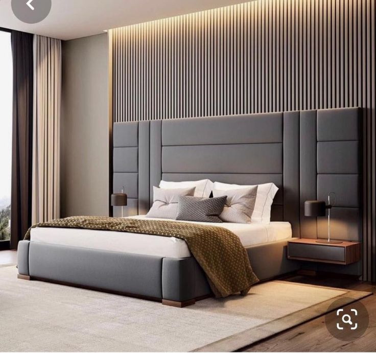 - Headboard Wall: Custom tall paneling blends fabric and wood for a bold, architectural focal point.
